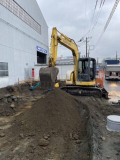 雨の中、鶴見で根切り作業!